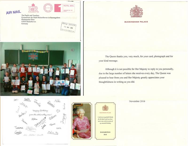Mit einer kleinen Verspätung erreichte uns Ende November ein Brief aus dem Buckingham Palace, in dem ein Mitarbeiter von Queen Elizabeth II sich in ihrem Auftrag herzlich für die Glückwunsche zum 90. Geburtstag der Queen bedankte und um Verständnis dafür warb, dass die Queen nicht persönlich die vielen Briefe aus der ganzen Welt beantworten könne. Dafür aber erhielten wir einen mit viel Golddruck und königlichen Wappen sowie einem Foto der Queen versehenen gedruckten Dankesgruß der Queen. Dies war die Antwort [...]