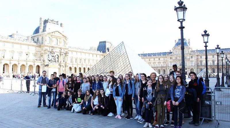 Direkt im Anschluss zur ersten Wochen sind wir alle gemeinsam für eine weitere Woche nach Breteuil gefahren, wo den Schülern ein abwechslungsreiches Programm geboten wurde. Neben einem internationalen Frühstück in der Schule und der Besichtigung von Breteuil inklusive Empfang durch den Bürgermeister, hat die Gruppe im Rahmen von zwei Ganztagsausflügen viel von Frankreich erleben können. Bei der Besichtigung der Hafenstadt Rouen durften sich die Schüler in der Kathedrale als Organisten versuchen und bekamen in der Panoramaausstellung von Yadegar Asisi einen eindrucksvollen Blick auf Rouen zur Zeit von Jeanne d‘Arc. Bei einem Stadtspaziergang durch Paris konnten die Schüler viele der schönsten Sehenswürdigkeiten hautnah kennenlernen: die Kirche Sacré-Cœur de Montmartre, das Museum Louvre, die Shoppingmeile Avenue des Champs-Élysées, die Kathedrale Notre Dame und den Park Jardin des Tuileries. Als krönender Abschluss durfte der Blick auf Paris von der Aussichtplattform des Eiffelturms nicht fehlen.