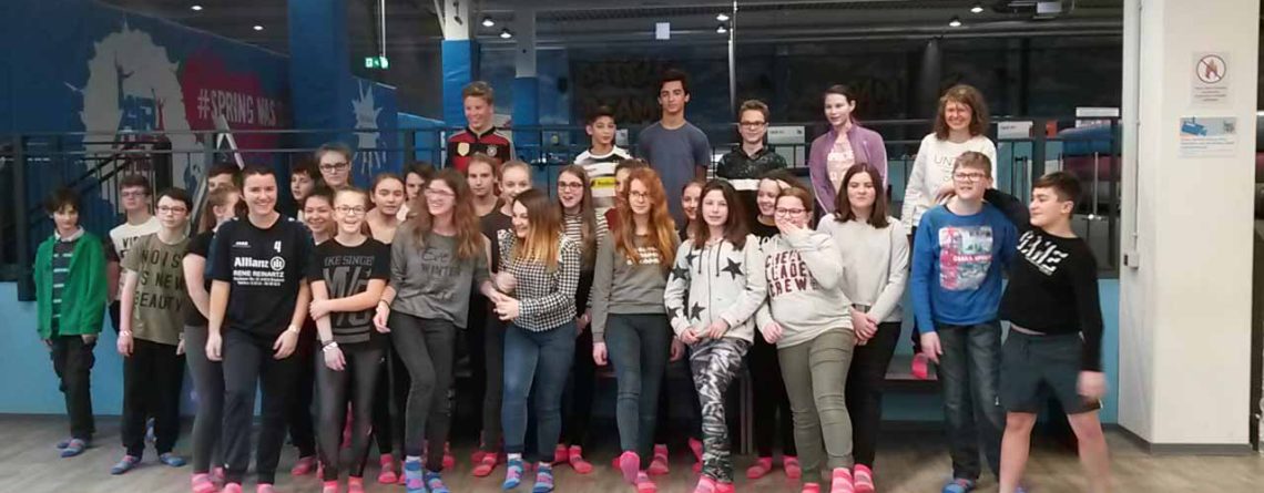 Am Mittwoch standen eine Stadtrundfahrt und ein Stadtrundgang in Düsseldorf auf dem Programm, bei dem eine Stadtführerin auf Französisch und Deutsch Informationen rund um Düsseldorf zum Besten gab. Zur Stärkung ging es anschließend ins Restaurant zum Pizzaessen. Der 1,5-stündige Besuch in der Trampolinhalle Airhop in Düsseldorf war für die Schüler das Highlight des Tages und spätestens jetzt war das Eis zwischen den Austauschschülern gebrochen.