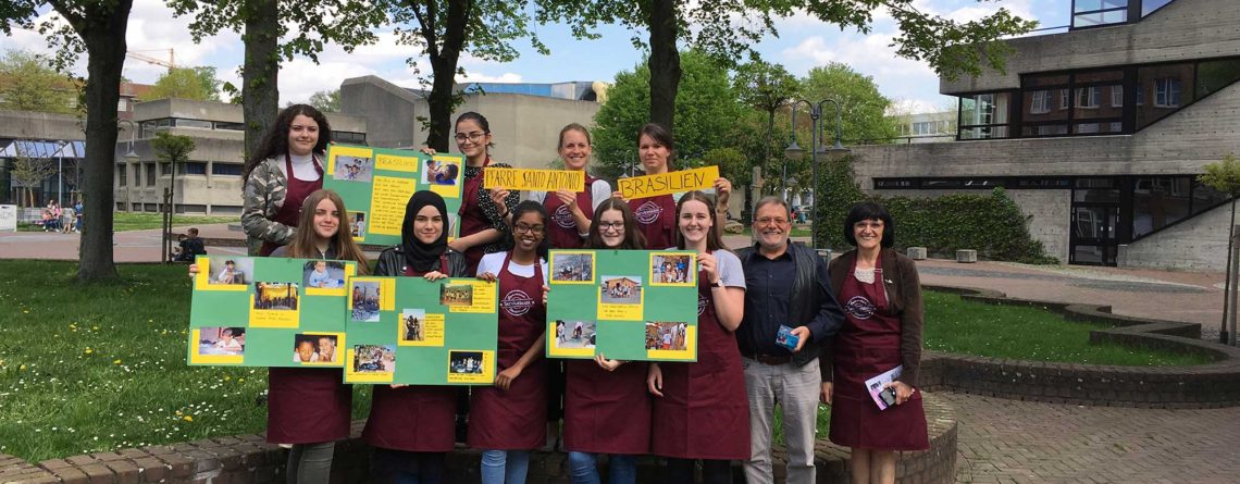 Beim letzten Elternsprechtag hatte die Cafeteria 301,71 € eingenommen, die das Serviceteam Herrn Bürger vom „Eine-Welt-Laden“ am 23. April 2018 übergab. Herr Bürger bedankte sich für die Spende und schilderte den Serviceteam-Mitgliedern sowie den beiden AG-Leiterinnen Frau Minartz und Frau Houben die Projektarbeit in Pilão. Er erklärte außerdem, dass der Verein es jungen Menschen aus der Region immer wieder gerne ermöglicht, bei den Projektpartnern – nicht nur in Brasilien – einen freiwilligen sozialen Dienst zu absolvieren.