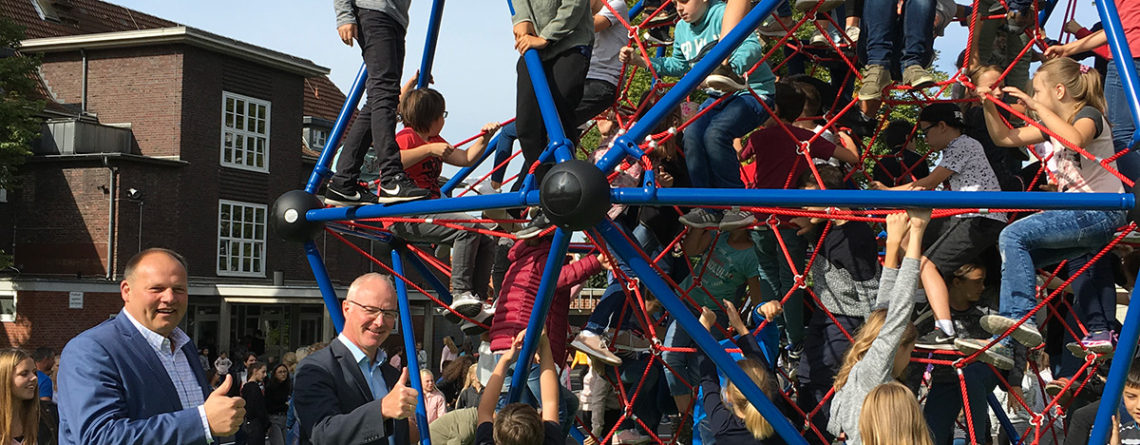 Nach den Sommerferien wurde der neue Schulhof von Bernd Jansen und Arnold Krekelberg eröffnet und die Schüler stürmten auf ihre neuen Spielmöglichkeiten.