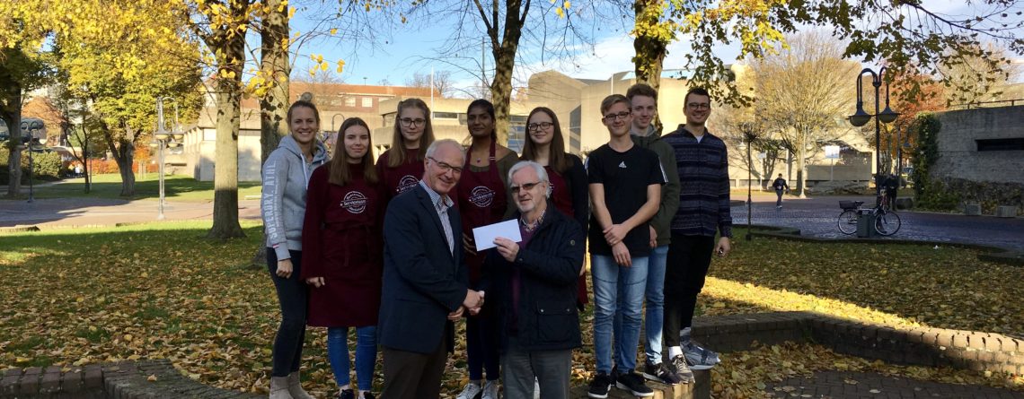 Im Rahmen des Konzertes hat der Verein eine Benefizaktion zugunsten des AG-Bereichs des Hückelhovener Gymnasiums durchgeführt, bei der ein Betrag von 500€ gespendet wurde.Dieser Betrag wurde nun dem Gymnasium Hückelhoven vom Vorsitzenden des Vereins, Rudolf Lengersdorf, überreicht.