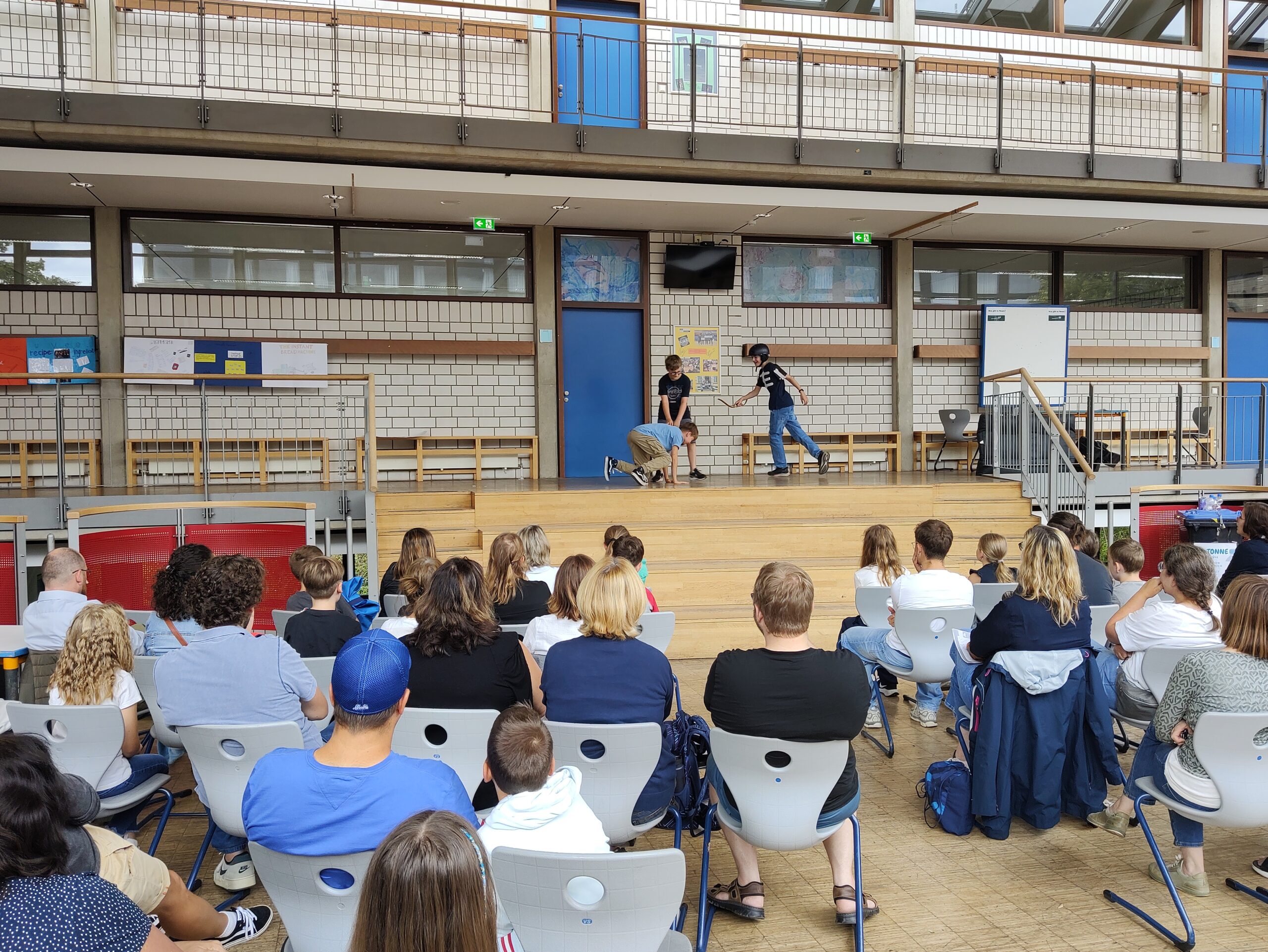 Dann ging es endlich los. Nun standen wir auf der Bühne und es hat wirklich Spaß gemacht. Als wir vorne standen und uns verbeugten, wussten wir, dass wir es gut gemacht hatten. Nach der Show präsentierten wir unsere Projekte. Ehrlich gesagt waren wir ein bisschen traurig, dass die Woche bereits geendet hat. Für jeden, der in den Ferien Spaß haben und sich gleichzeitig auf die Schule vorbereiten will, ist das ein lustiges und tolles Projekt.