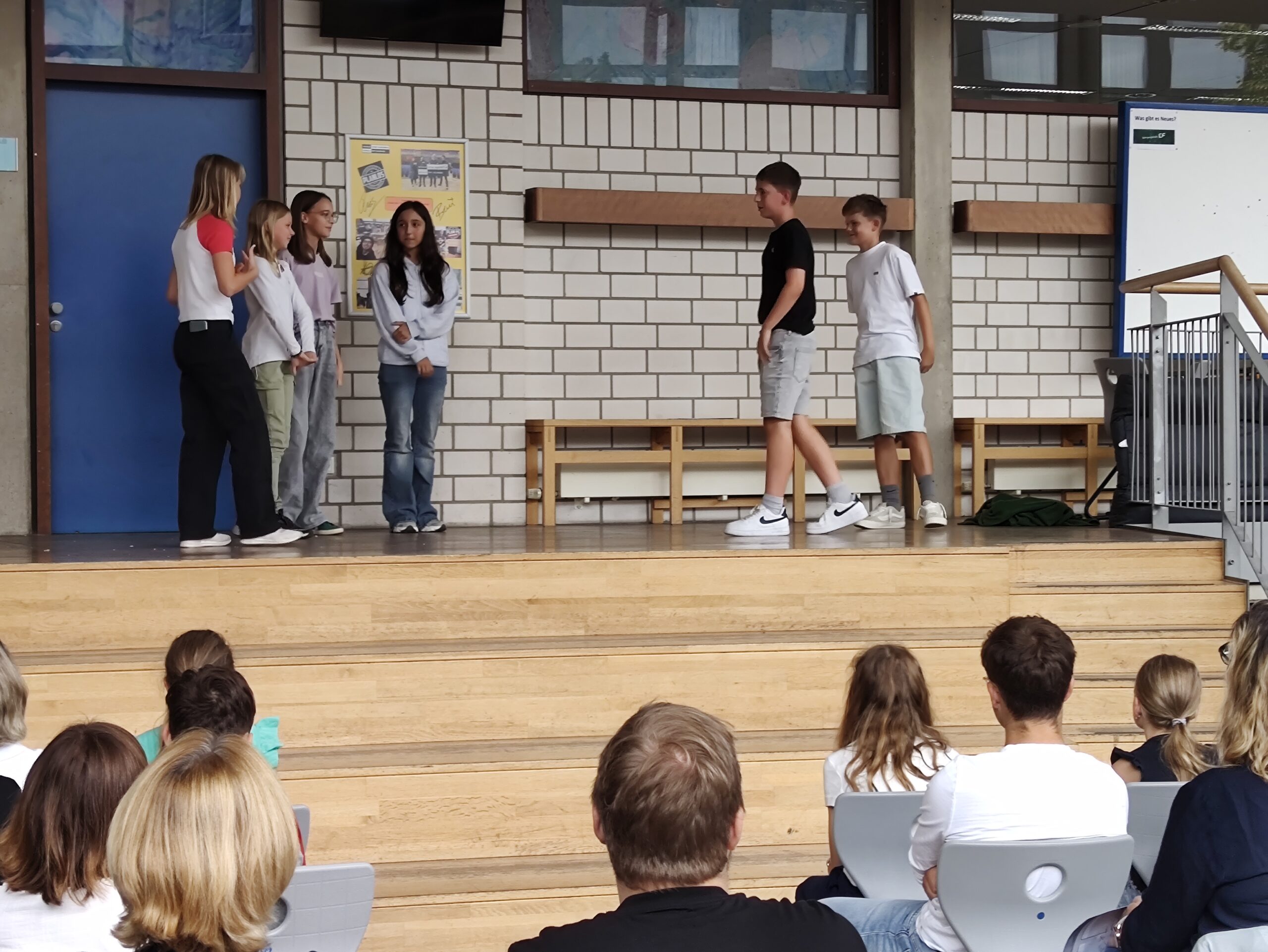 Am Montag der letzten Ferienwoche trafen wir uns alle am Stern. Zuerst wurden wir von zwei englischen Lehrerinnen begrüßt. Danach gingen wir in die Klassen. Wir waren von da an jeden Tag sechs Stunden zusammen. in den ersten drei Stunden lernten wir uns kennen und redeten viel Englisch. In den letzten drei Stunden arbeiteten wir an Projekten und Shows, die wir am Freitag schließlich vorstellen durften. Die nächsten Tage verliefen genau so wie der Erste. Drei Stunden Spiel und Spaß auf Englisch, dann arbeiten an den Projekten.