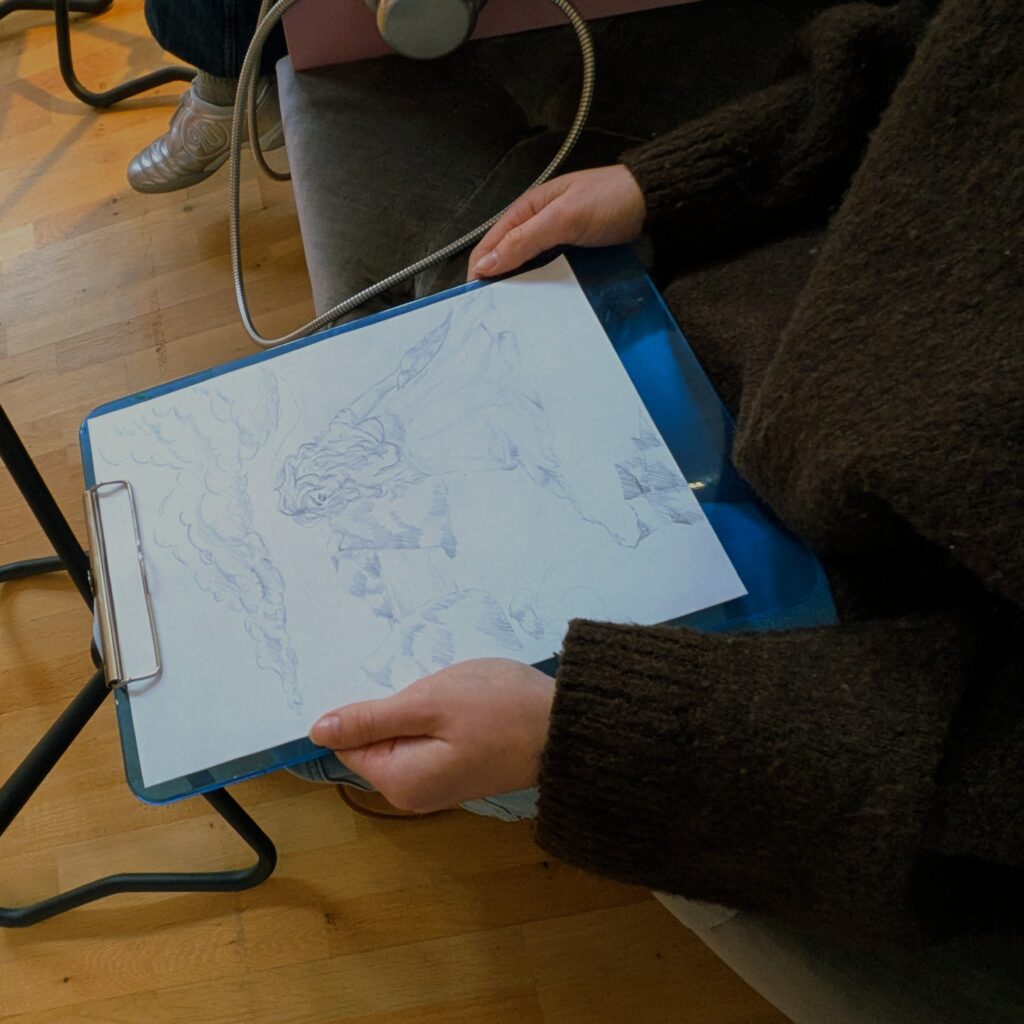 Seit jeher lernen Künstler wie die der Familie Begas ihr Handwerk auch über das Nachahmen und Kopieren anderer Werke. Daher erhielten die Schülerinnen und Schüler im Anschluss an die Führung, die Möglichkeit sich in die Komposition selbst gewählter Porträts aus der Sammlung zu vertiefen. Sie verteilten sich im Museum und benutzen diverse Porträts und setzten sie in eigene Zeichnungen um. Dabei stellte sich die „Lurelei“ als das begehrteste Motiv heraus.