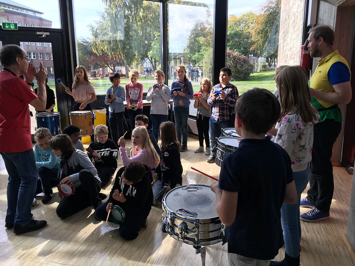 Gerade einmal zwei Wochen nach der Interkulturellen Woche fanden am 8. Oktober 2018 gleich zwei Workshops zum Thema African Music statt. Zwischen 8 und 13.30 Uhr übte so die Klasse 5d unter der Leitung des Ratheimer Saxophonisten und Schlagzeugers Otto Jansen mit Trommeln, Rasseln und anderen heißen Percussioninstrumenten an mitreißenden Loops und geschichteten Rhythmen. Gleichzeitig erarbeitete eine Auswahl von 22 freiwilligen SchülerInnen der Klassen 7 bis 9 unter der Leitung der Rock-, Jazz- und Musicalsängerin Velile Mchunu einen Mix aus [...]